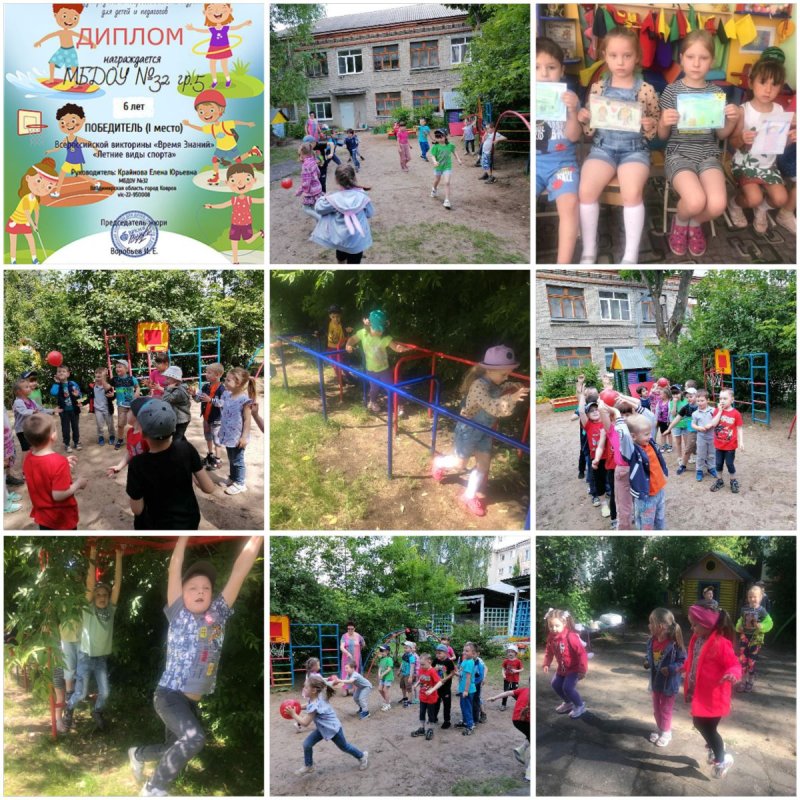Сегодня в нашем детском саду прошел День спорта. Были организованы зарядки на свежем воздухе, спортивные игры, эстафеты, ИКТ-викторины, рассматривание и обсуждение тематических альбомов, рисование, чтение художественных произведений, загадок и др. Воспитанники всех групп проявили свои лучшие способности – кто-то был быстрее в беге, кто-то более ловким в беге, кто-то более метким в игре «вышибала», кто-то точнее в прыжках, сильнее на «полосе препятствий». Дети получили массу позитивных эмоций и ощущений, расширили кругозор, узнали, что здоровый образ жизни включает в себя не только правильное питание, но и занятия спортом. Таким образом, День спорта в детском саду не только позволил ребятам провести время с пользой, но и развить спортивные навыки, расширить кругозор и повысить мотивацию к здоровому образу жизни. Сердечно поздравляем наших старших дошкольников и воспитателя Крайнову Е.Ю, занявших 1 место во Всероссийской викторине "Летние виды спорта" сайта Всероссийских СМИ «Время знаний».